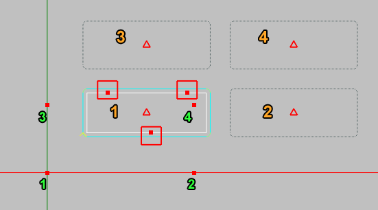 Note: Copies are shown as a dotted outline of the same color as used for the display of the cut widths (from revsion N), with a red triangle in each center as shown in the picture below. You can also activate the menu View/ Show cut widths, allowing a better view of the copies as on the images above.