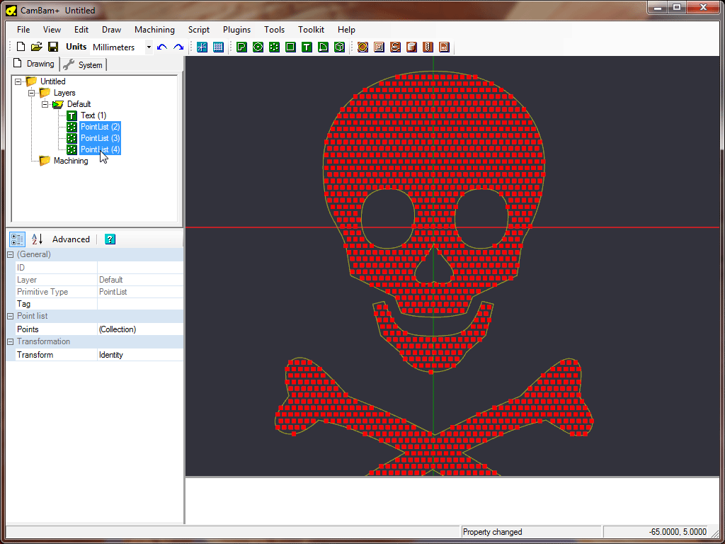 With the point lists selected, insert a drilling machine operation Drilling machine operation.