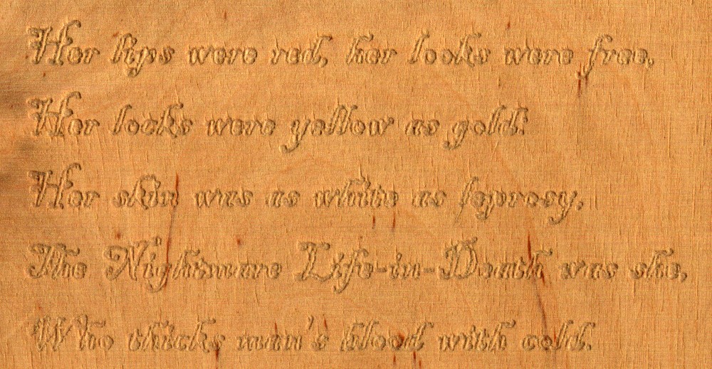 Not exactly high art, but the letters are quite small (3-6mm) and plywood isn’t the best precision engraving material.