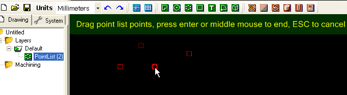 Click the middle mouse button, or press Enter, to accept the changes. Press ESC to cancel the point list edit.