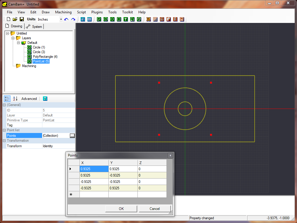 A PointList object will have been created in the drawing tree and it's properties will be visible in the object property window.