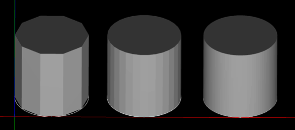 This following image of a circle extrusion shows steps of 10, 30 and 100.