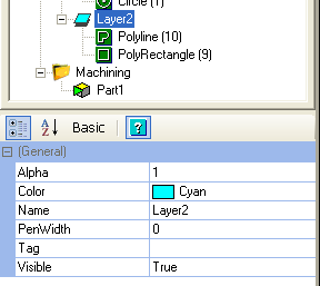 Selecting a layer in the drawing tree allows its properties to be altered in the property grid.