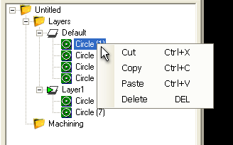 Drawing objects can be moved between layers using cut, copy and paste, or by simply dragging and dropping them