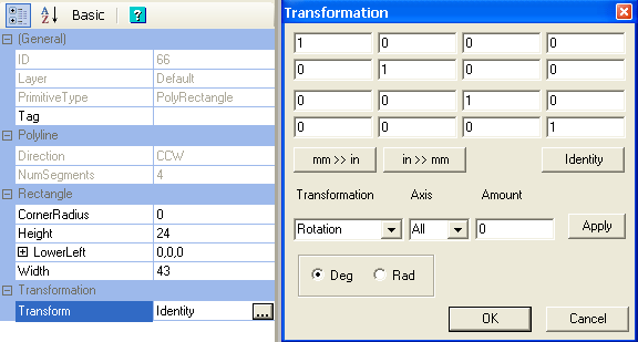 To reset the transformation matrix, click Identity.